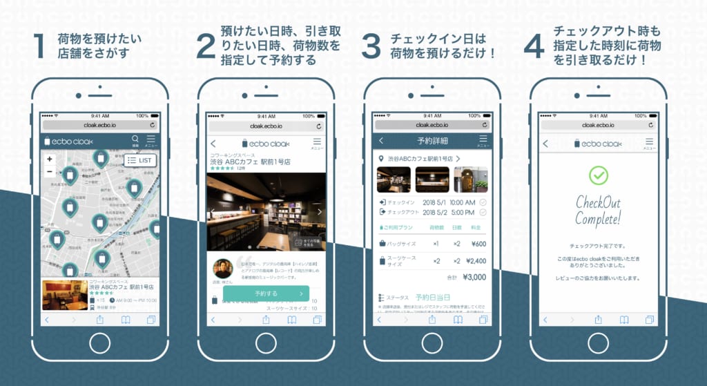 ecbo cloak社は2025年大阪・関西万博の公式荷物預かりおよび配送事業者に選定されていて、スマホ1つで荷物の預かり場所の検索から、事前予約ができるサービスが好評で今後もさらなる需要拡大が見込まれている。