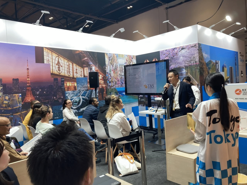 TAS Co.,Ltd.は、WTM 2025※に東京観光財団(TCVB)ブース内の共同出展として参加しました。会場全体は盛況で、東京の観光産業を代表する10社による共同ブースは大きな存在感を示しました。